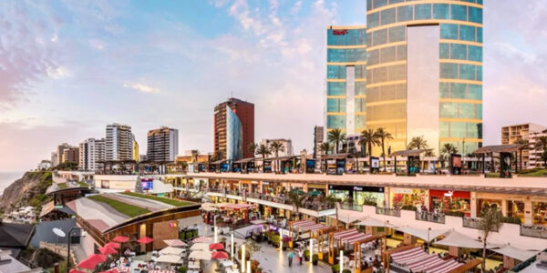Larcomar, un centro de diversión con tiendas, restaurantes, cines, áreas verdes y una incomparable vista del mar peruano.